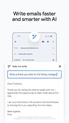 Osana Google Workspace'ist võimaldab Gmail teil sujuvalt suhelda, luua ja koostööd teha. Sukelduge koostöösse Google Chati kaudu, kus saate vestelda, organiseerida projekte ja hallata meeskonnaliikmeid spetsiaalsetes ruumides. Korraldage või liituge kõrge kvaliteediga videokoosolekutega Google Meeti abil otse rakendusest. Hallake oma ajakava, vastates Google'i kalendri kutsetele otse Gmaili keskkonnast ja säästke aega kontaktide nimede automaatse täitmisega. See terviklik platvorm tagab, et teie ja teie tiim püsite ühenduses ja produktiivsed, ilma et peaksite Gmaili rakendusest lahkuma.