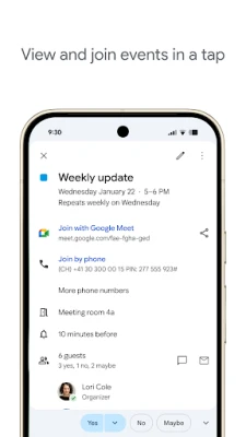 Google'i kalender, ametlik Google Workspace'i rakendus, aitab teil oma Android-telefoni, tahvelarvuti või Wear OS-i seadmega aega hallata. Korraldage oma päev, püstitage eesmärgid ja saage igast hetkest maksimum. Lihtne ja tõhus ajaplaneerimine teie käeulatuses.