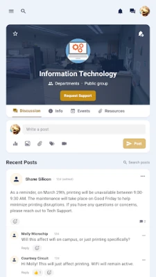 Lisaks informatsiooni koondamisele edendab see platvorm aktiivset ülikoolikogukonda. Looge või liituge teemaspetsiifiliste gruppidega, et süveneda aruteludesse, jagada teadmisi ja teha tulemuslikult koostööd oma kaaslastega. Avastage ja looge tähendusrikkaid sidemeid üliõpilastega, kellel on sarnased huvid, taust või eesmärgid, rikastades oma ülikooliaega ja laiendades akadeemilist võrgustikku. See on ideaalne koht uute kontaktide loomiseks ja ühistele eesmärkidele pühendumiseks.