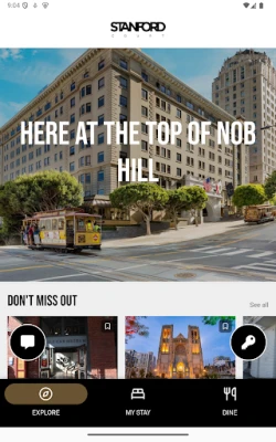 Lisaks hotellisisesele mugavusele aitab rakendus teil avastada ka ümbritsevat. Sukelduge Nob Hilli ja San Francisco kütkestavasse atmosfääri, uurides soovitusi kohalike vaatamisväärsuste, gurmeeelamuste ja kultuurisündmuste kohta. Teie arvamus on meile oluline, seetõttu pakub rakendus võimalust anda koheselt tagasisidet oma kogemuse kohta, aidates meil pidevalt teenuseid parendada ja tagada teile iga kord erakordse külastuse.